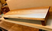 基本的にPCのモニタースタンドとキーボードとマウスの収納用に製作した、無垢のけやき1枚板+山桜の脚を使った天然木製スタンドです。PLYウッド材や集成木材とはひと味違う、本物の無垢天然木の質感をお楽しみいただけるかと思います。