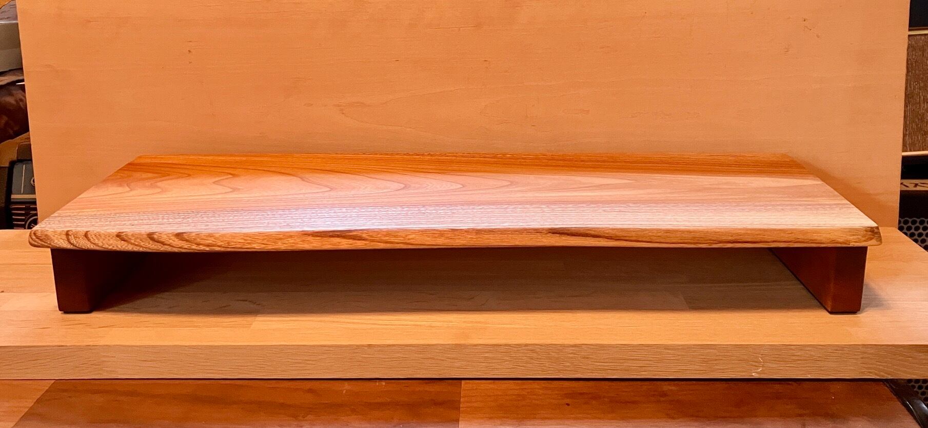天然木製 PCモニタースタンド*無垢けやき1枚板+山桜脚(キーボード・マウス収納可)