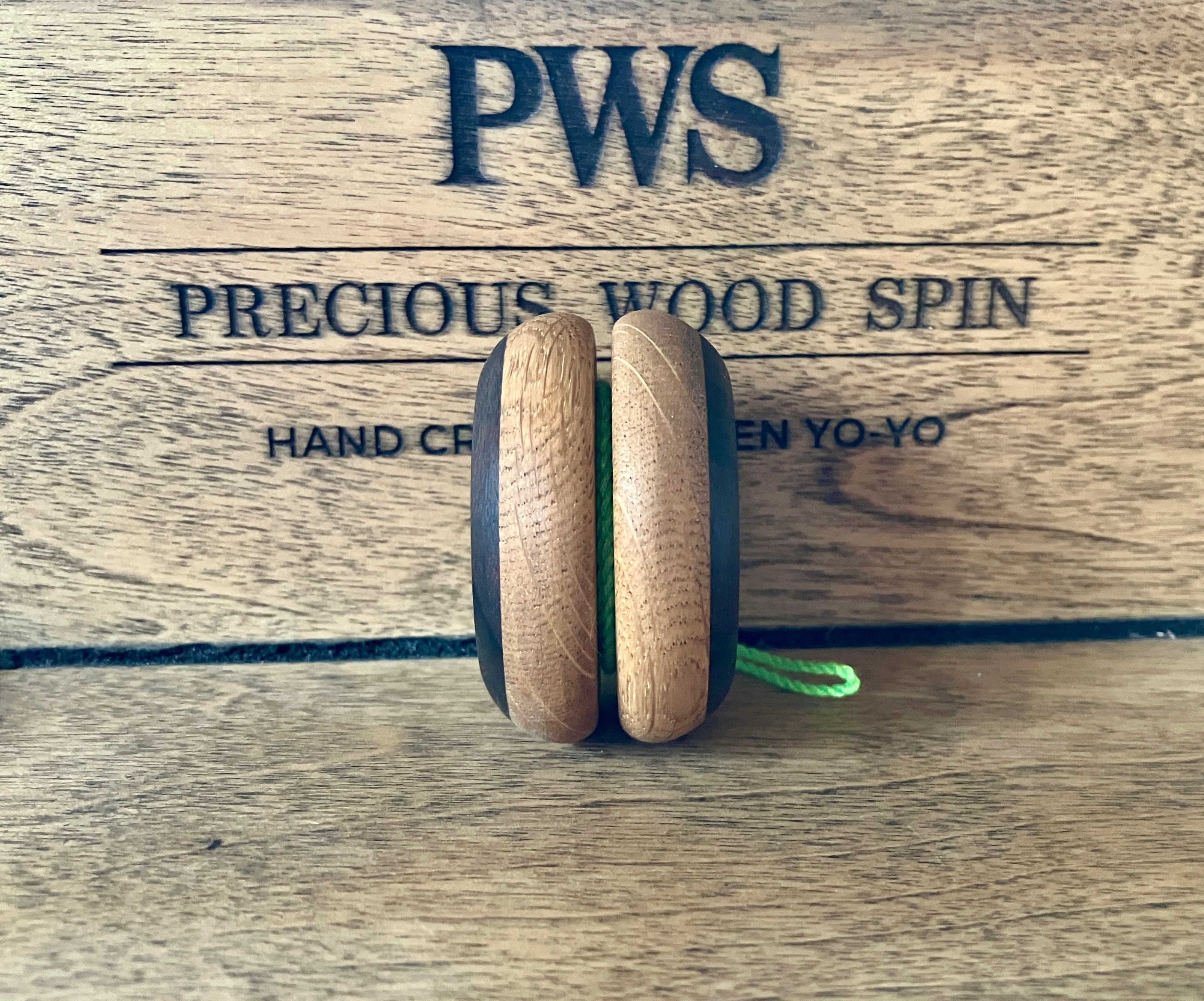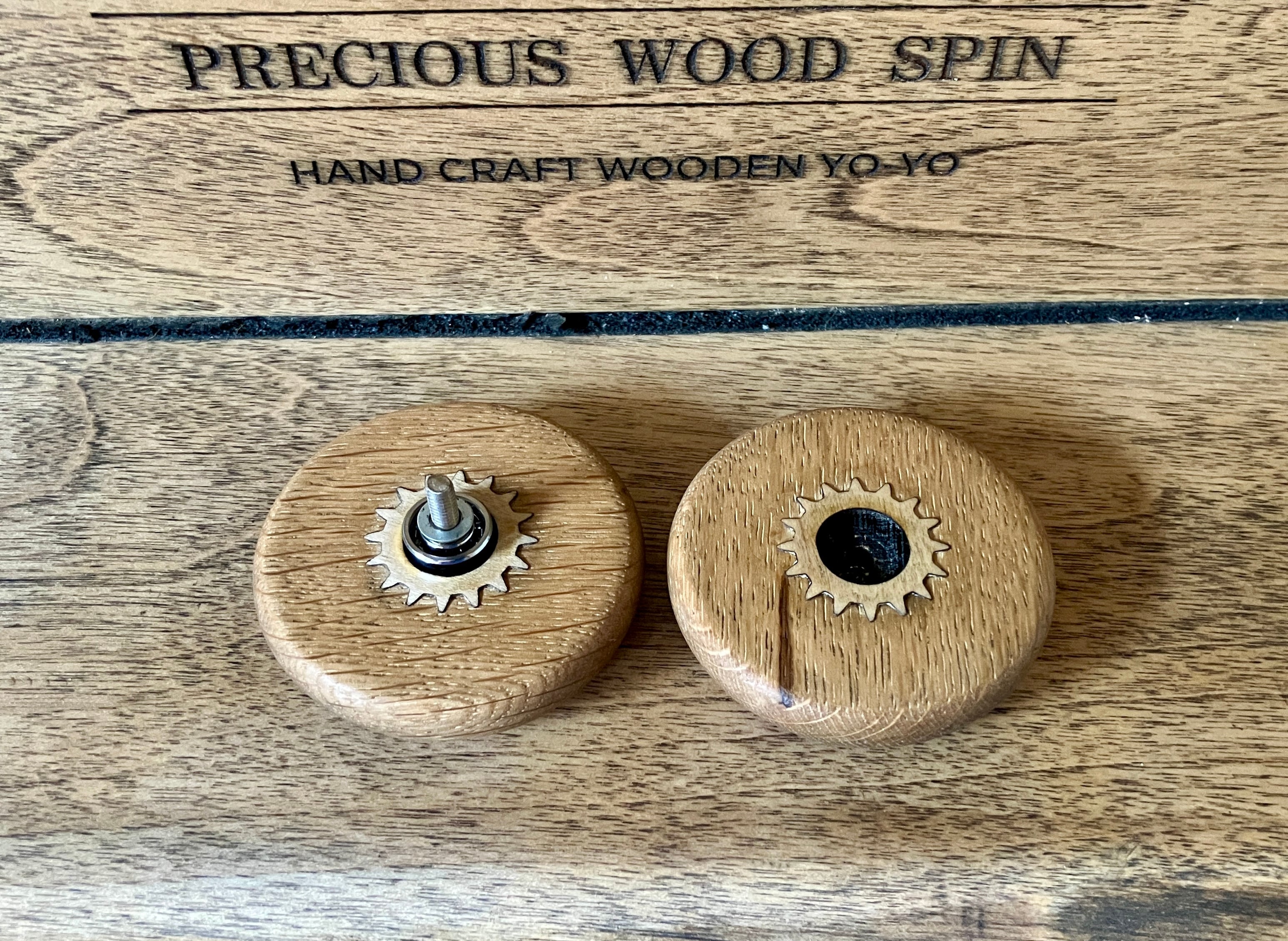 This is a wooden pull-back yo-yo made by hand, piece by piece, using precious solid natural wood called PRECIOUS WOOD.