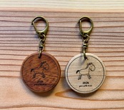 2026年の干支である馬が施された無垢の天然木を使用したキーホルダーとなります。