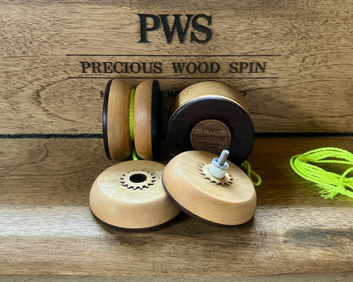 銘木ヨーヨー 「PWS」インディアンローズウッド×イエローバーチ プラスチックベアリング搭載!分解可能!