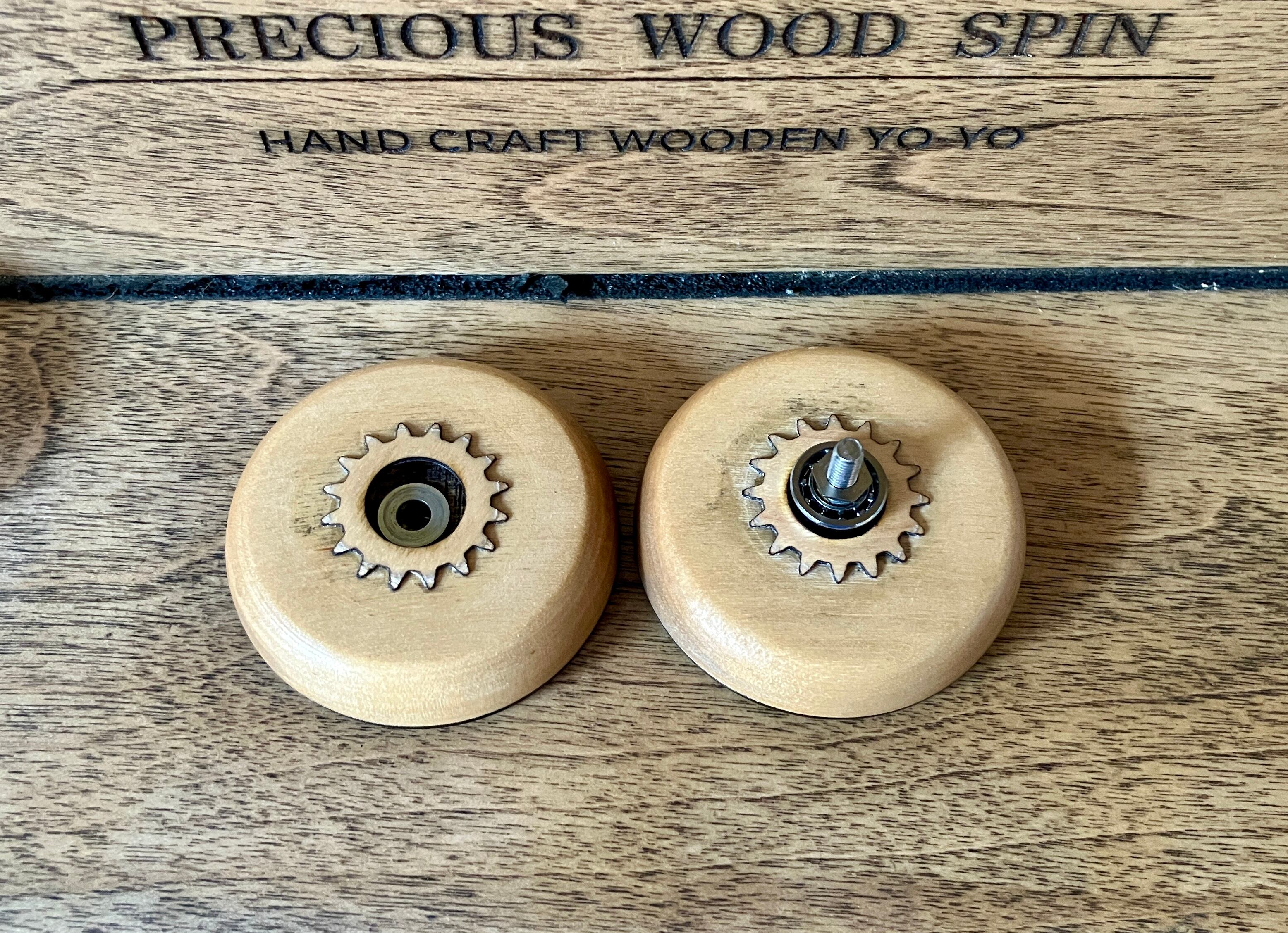 競技用ヨーヨーほどの性能も、大手メーカー製ほどの精密度もありませんが、木製ならではの感触とメタルボールベアリングならではの回転力をお楽しみいただけるかと思います。