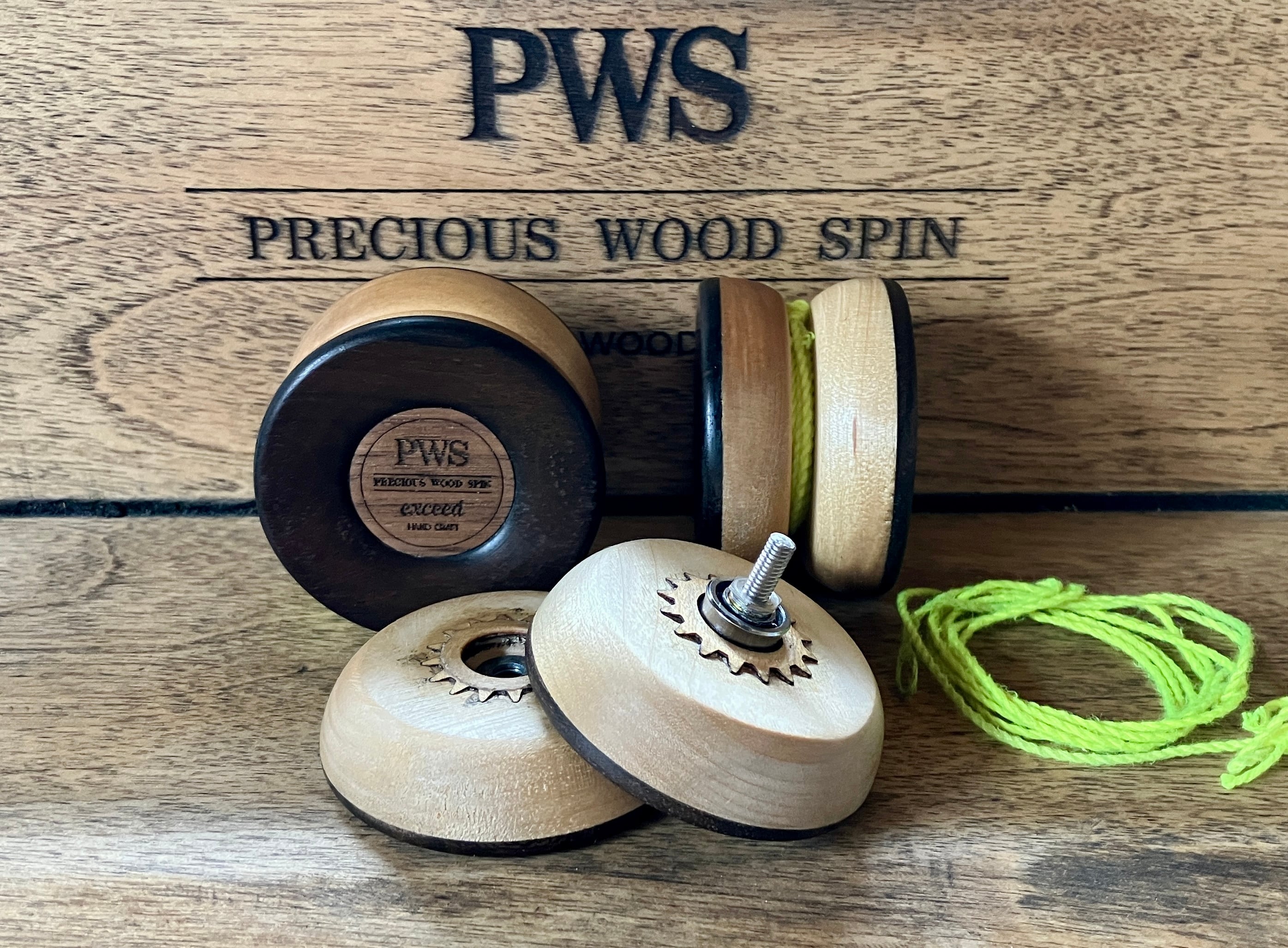 本品は銘木(PRECIOUS WOOD)と呼ばれる貴重な無垢木材を使用し、ひとつずつハンドメイドで作られた木製ヨーヨーです。通常のPWSシリーズのフィーリングはそのままに、メタルボールベアリングを搭載し更にスリープ力を強化した「PWS エクシード」モデルです。