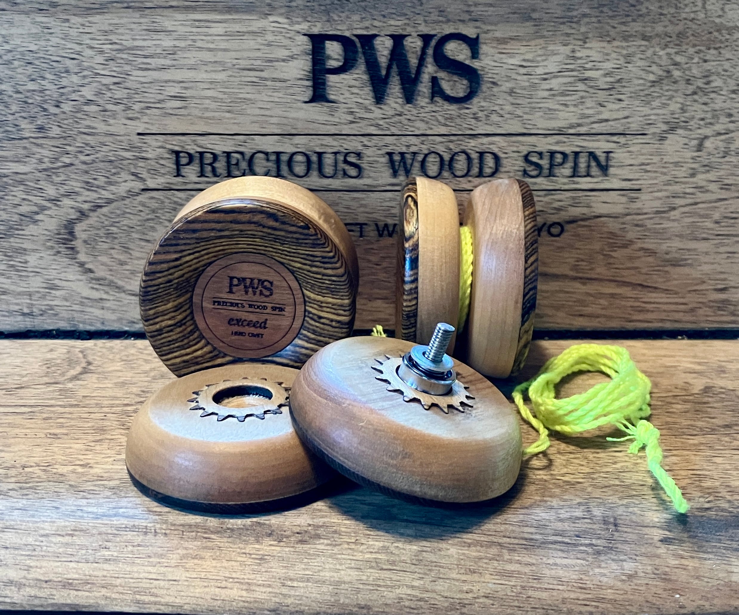 本品は銘木(PRECIOUS WOOD)と呼ばれる貴重な無垢木材を使用し、ひとつずつハンドメイドで作られた木製ヨーヨーです。通常のPWSシリーズのフィーリングはそのままに、メタルボールベアリングを搭載し更にスリープ力を強化した「PWS エクシード」モデルです。