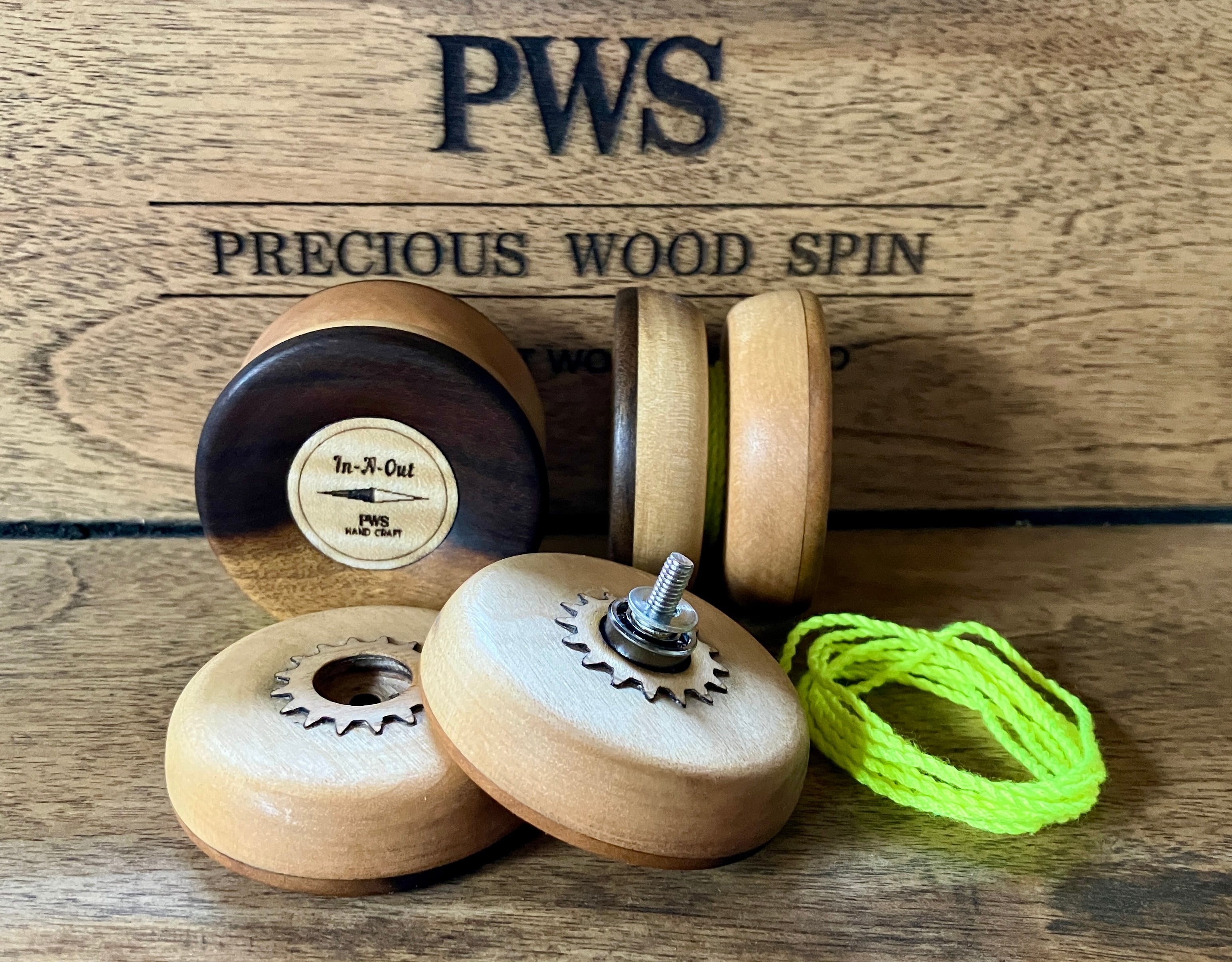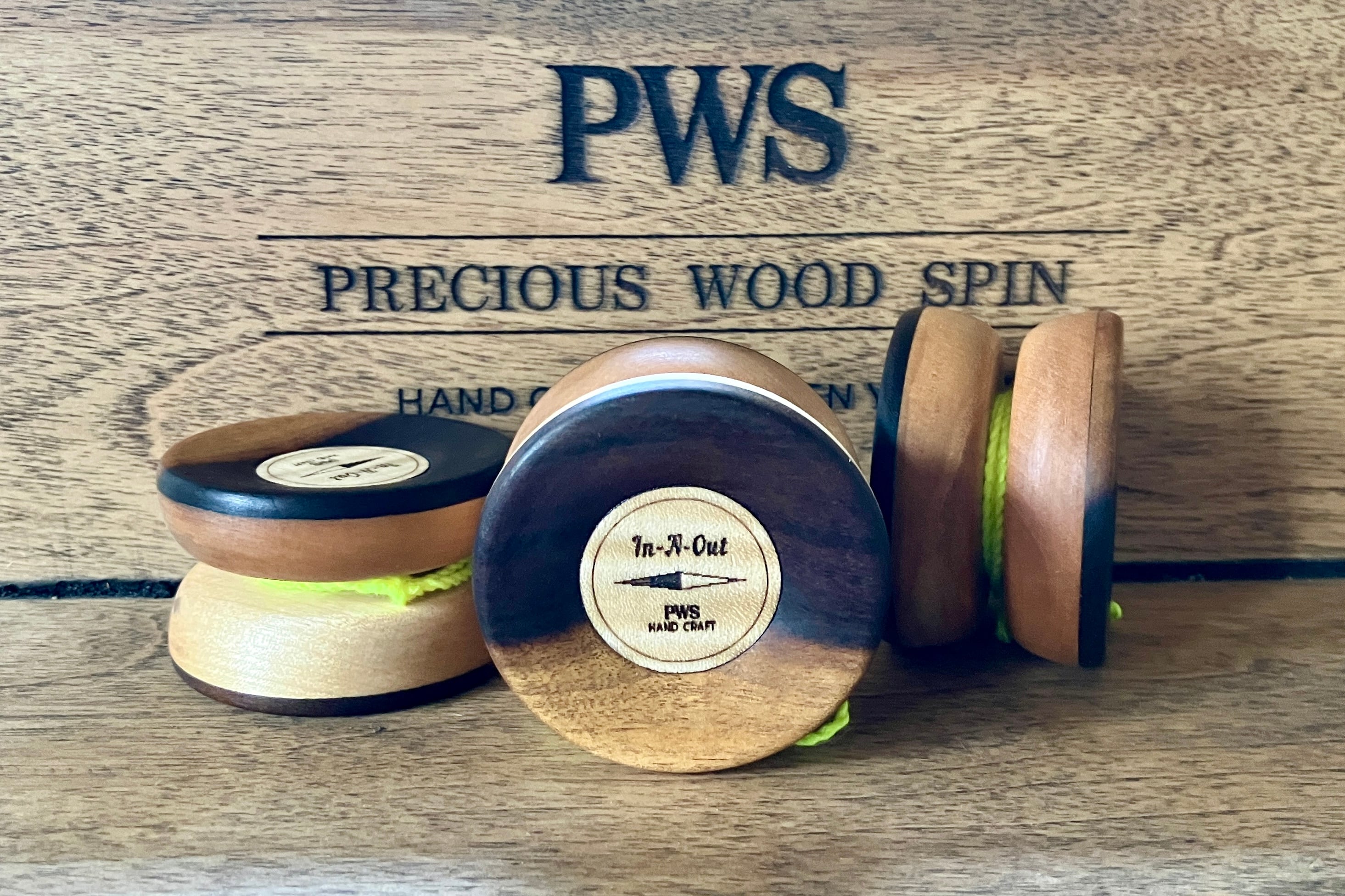 銘木ヨーヨー 「PWS In-N-Out」インディアンエボニー×イエローバーチ メタルボールベアリング搭載!分解可能!